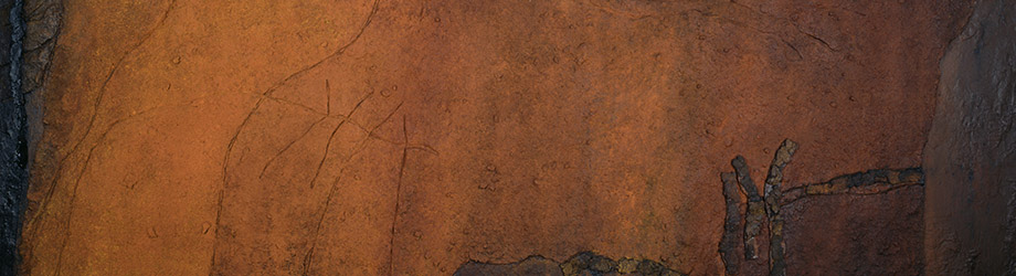 Li trova qui e adesso, nella sua valle, dove nasce anche il suo mondo di immagini, carichi di storia e di storie. Il sasso cresce lento, come i minerali dentro di esso, la sabbia del fiume che ha già compiuto un lungo viaggio e un altro altrettanto lungo compirà, i pigmenti, legati con la colla ottenuta con le ossa di coniglio, la terra, l’asfalto, il catrame – e la cenere, ma solo quella del camino di gente che conosce, sapendo quale legna brucia e quale tonalità darà. Aperto e curioso anche in questo, Casè sa altresì utilizzare materiali raccolti in viaggio, materiali inconsueti, come può esserlo la carta di paglia.